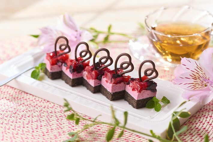 宇治抹茶ケーキ香り高い宇治抹茶のほろ苦さと、濃厚なチョコレートが絶妙に調和。奥深い大人のハーモニーが堪能できるケーキです。