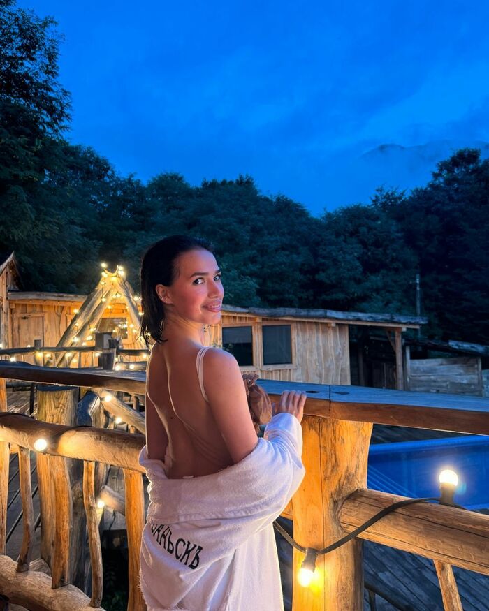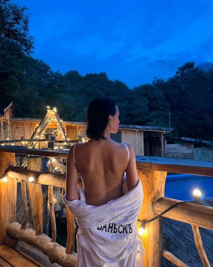 ザギトワは今回の投稿で、大自然に囲まれた中、サウナを楽しんでいる様子を公開。