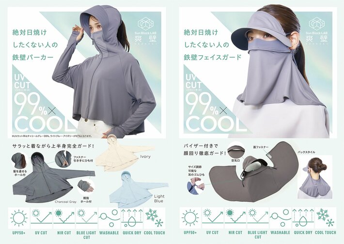 プラスの機能で更に便利!「サンブロックラボ 爽壁PlusフェイスガードUVパーカー」