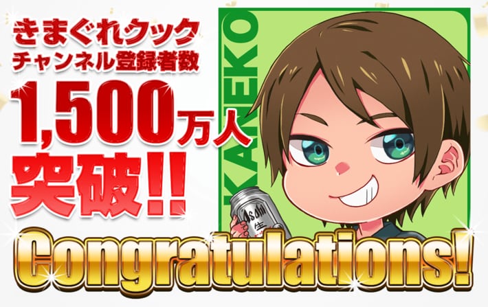 「きまぐれクック」のYouTubeチャンネル登録者数が1,500万人を突破しました!
