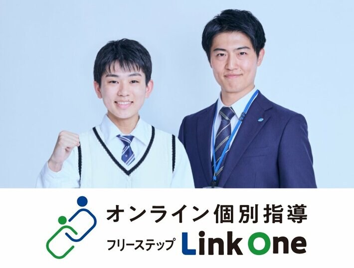 オンライン個別指導フリーステップLinkOneは、全国270教室以上展開する個別指導学院フリーステップが提供する1対1オンライン個別指導です。成学社が約40年にわたって培ってきた指導ノウハウと、最新のITシステムを融合させました。独自システム「S-CUBE」による目標管理や、学習進捗を可視化するアプリ「My Step Log」を活用し、対面授業と遜色ない「点数アップ」と「志望校合格」を実現します。全国どこからでも、フリーステップの精鋭講師による「発問型授業」を受講することが可能です。