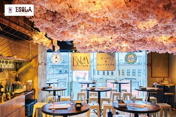 セルフスタイルのビュッフェ形式で、世界各国のワインとの出会いを自由に楽しめる新感覚ワインバー「ESOLA」。店内の天井やワインビュッフェ台を中心に桜をあしらい、春を感じられる空間を演出します。ひと足早く春気分を味わいたい方や、混雑や天候を気にせずゆったりと桜を楽しみたい方にもおすすめ。さらに桜や海老を取り入れた春季限定メニューも登場!味わいはもちろん、ワインとの相性にもこだわったラインナップです。ESOLA自慢のワインビュッフェとともに、春のひとときをお楽しみください。