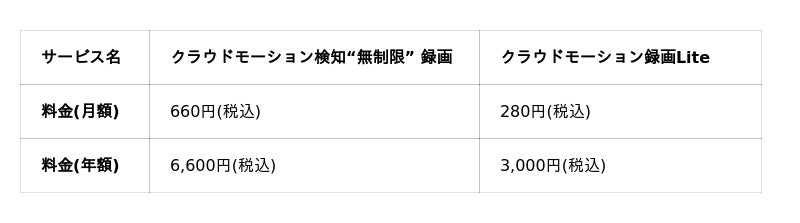 2種のクラウドモーション録画サービス「クラウドモーション検知“無制限” 録画」及び、