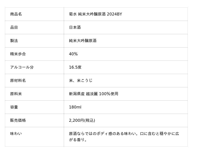 2.数量限定「菊水 純米大吟醸原酒 2024BY」180ml