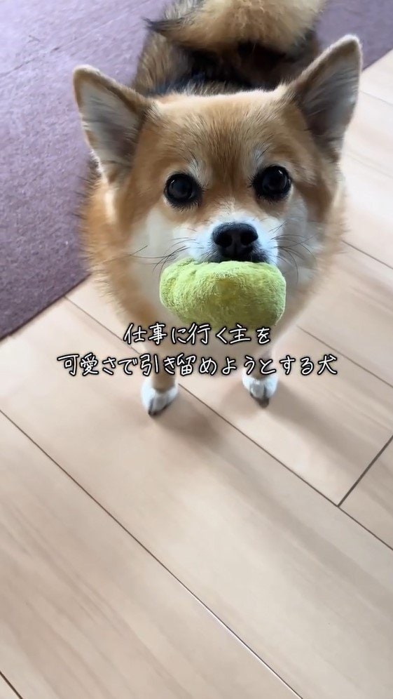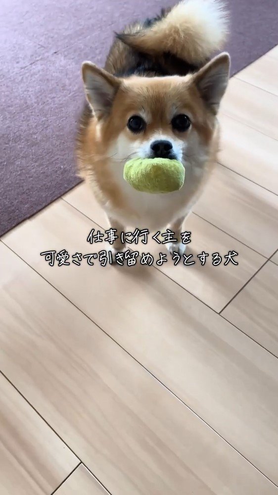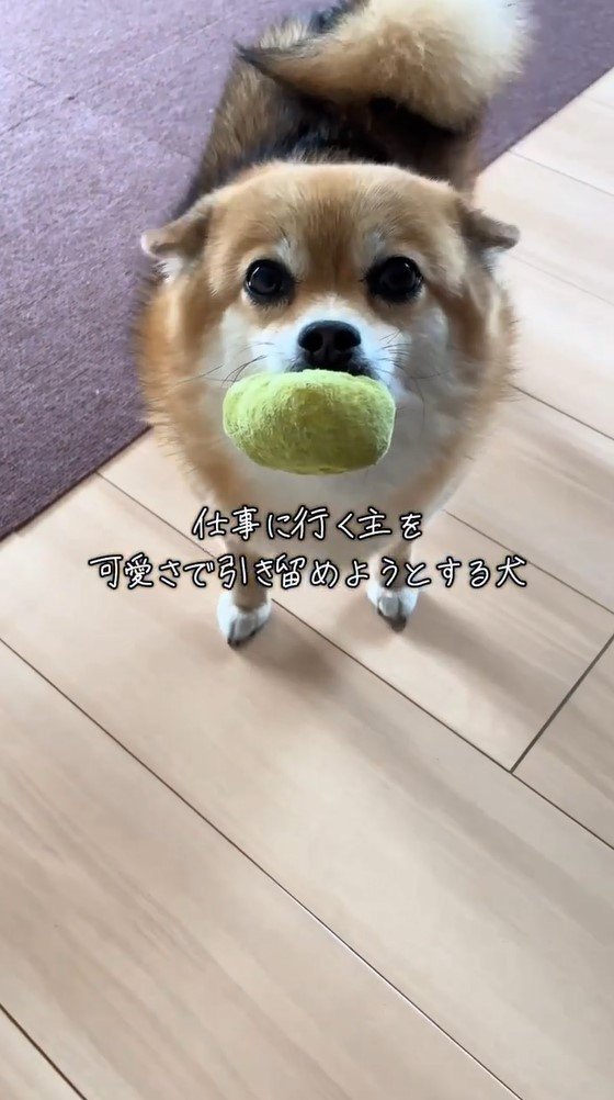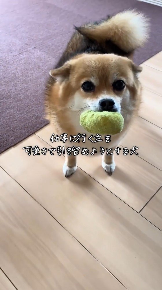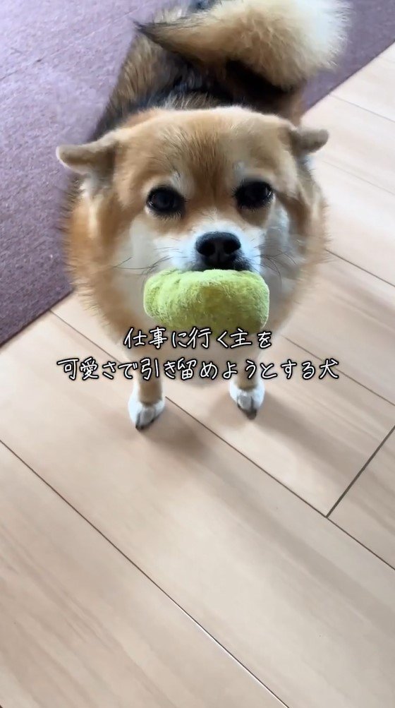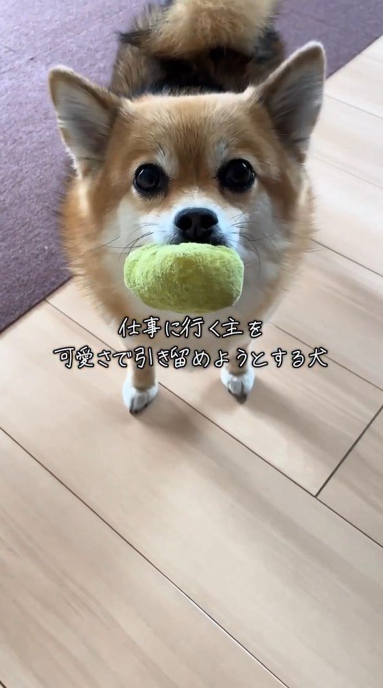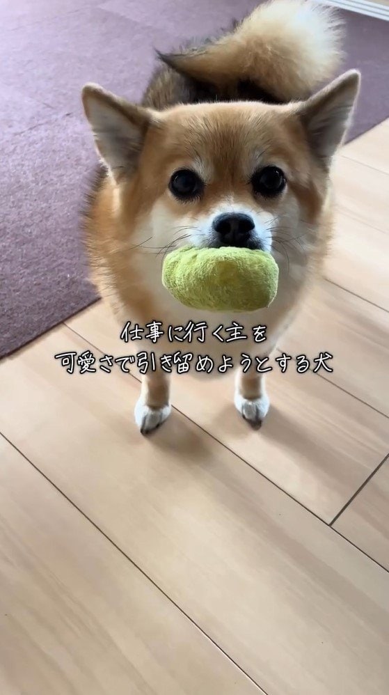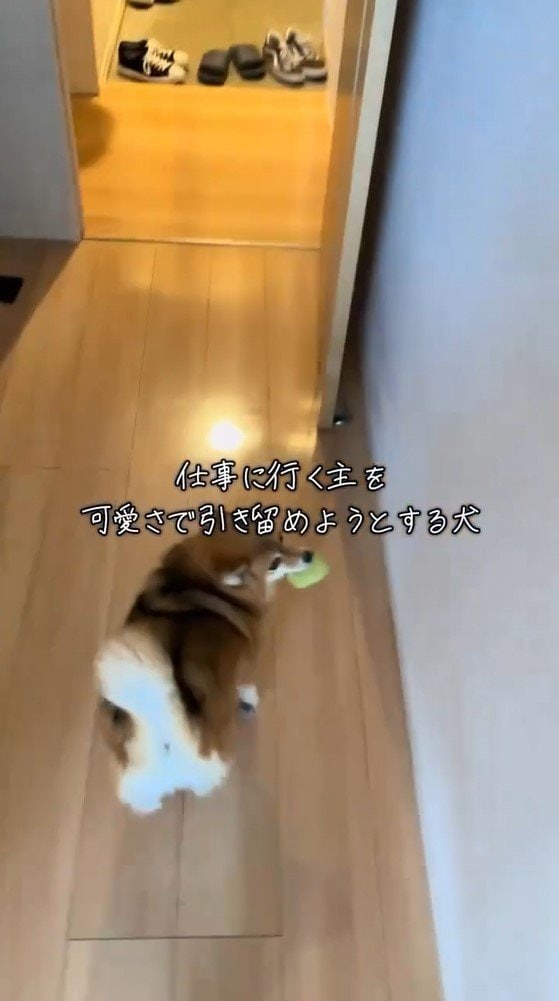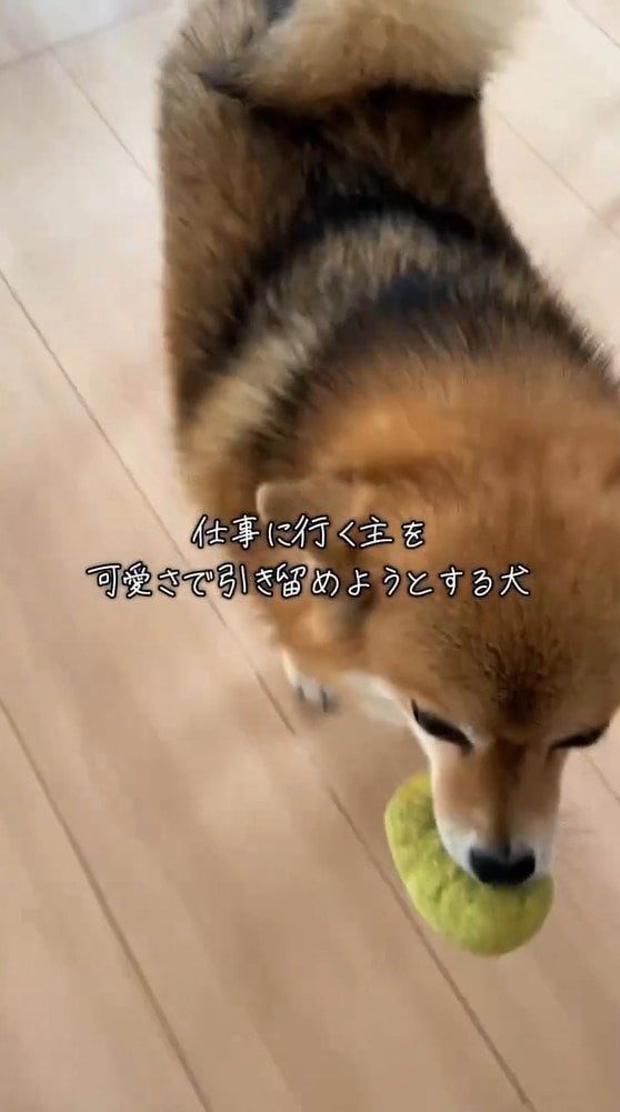 動画のテロップに「仕事に行く主を可愛さで引き留めようとする犬」とつづっていて、一体どのような姿を見せたのでしょうか?