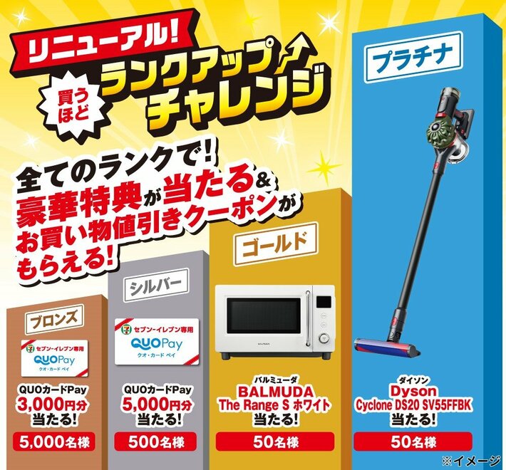 株式会社セブン‐イレブン・ジャパン(本社:東京都千代田区、代表取締役社長:阿久津 知洋)は、セブン‐イレブンアプリの会員コードをスキャンしてお買い物すると、期間中の累計お買い物金額に応じてランクがアップし、最大10枚のクーポンと各ランクに応じて景品が当たる抽選権が届く「買うほどランクアップチャレンジ」を、2026年3月1日(日)~3月31日(火)の間、実施いたします。