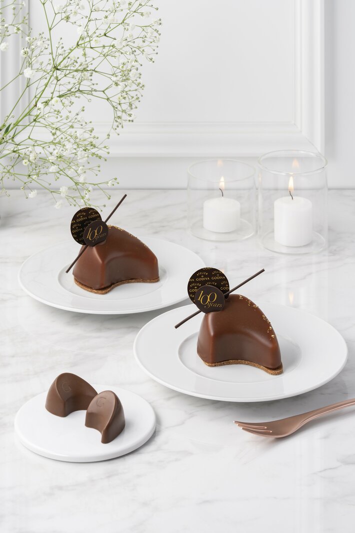 ゴディバを代表するチョコレート粒のひとつ「ルーン」がケーキに!驚きと楽しさを届けたい、そんな思いからゴディバ100周年を記念して遊び心に満ちたケーキをご用意しました。パッションフルーツの酸味を引き立てる軽やかなプディングをベースに、まろやかなミルクチョコレートプラリネクリームを重ねました。
