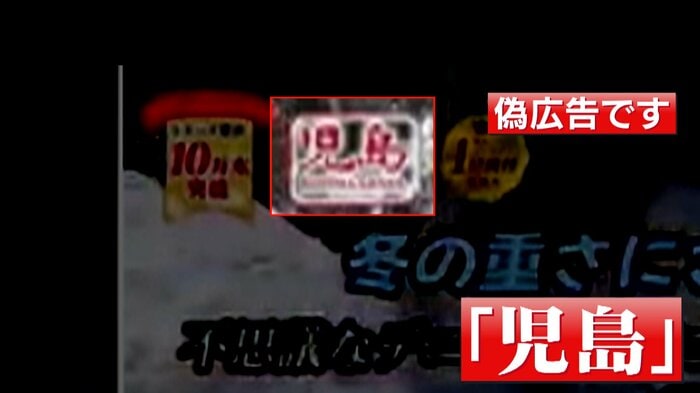 偽の広告動画の上の部分には「児島」というロゴが書かれています。
