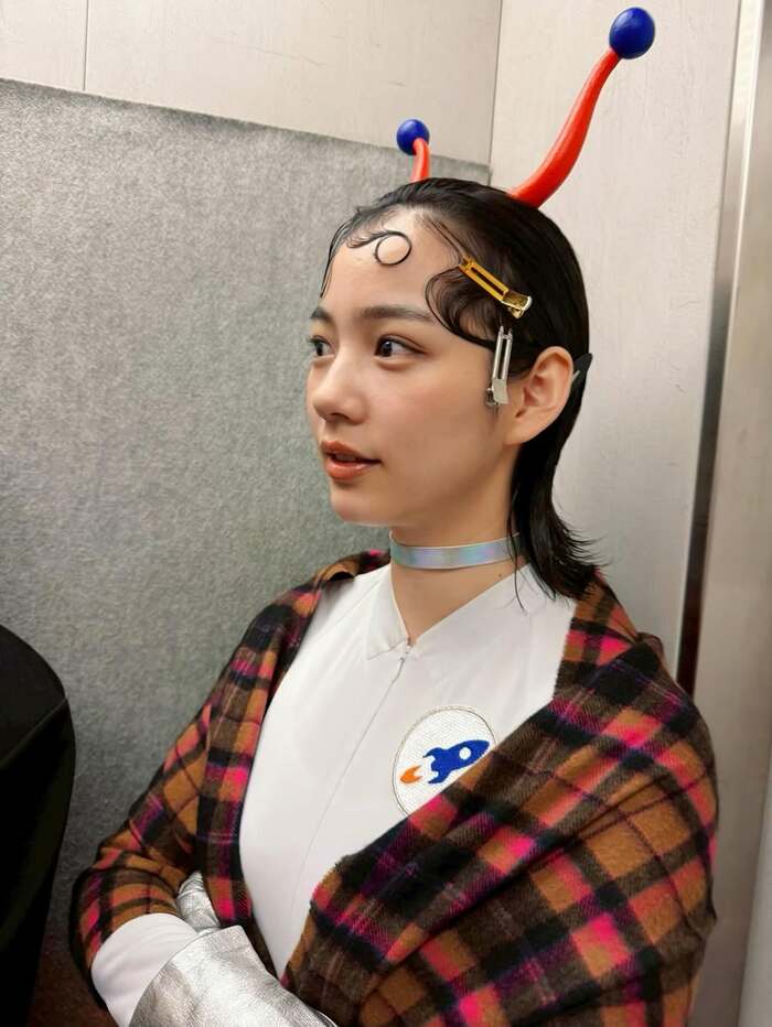宇宙人に扮した姿を公開し「歩く芸術」「前髪くるりんかわいい」などとコメントが寄せられています。