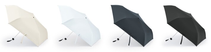 今回発売する「遮熱性のある 折りたたみ日傘」はポリエステル生地に特殊コーティングをすることで遮熱性を備えました。UVカット(※1)90%以上・UPF50+(※2)・遮光率(※3)99%以上です。日差しから肌を守り、昨今の暑さの中でも日中をより快適にお過ごしいただくためのサポートとなります。カラー展開は春夏のコーディネートにも合わせやすい爽やかなアイボリー・ライトブルーと、ビジネスシーンから日常使いまで誰でも幅広く取り入れやすいネイビー・黒の4色です。