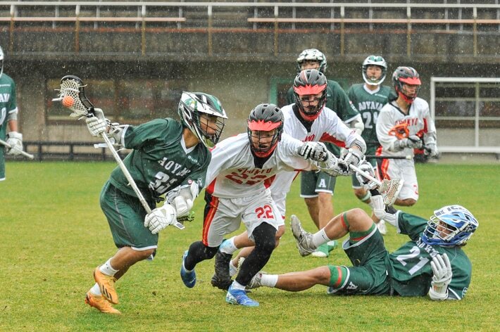 ラクロスは先端にネットがついたスティック(クロス)と呼ばれる道具を使ってボールを運び、相手ゴールに入れて得点を競うフィールドスポーツです。両チーム10人で、15分×4クォーターで行われ、男女でルールは若干異なりますが、パス・キャッチ・シュートと、ボールスポーツの醍醐味が全て組み込まれています。