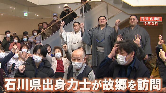 その翌月、大の里は同じく石川県出身の力士、遠藤・輝とともに、被災者を勇気づけようと県内にある避難所を訪問しました。