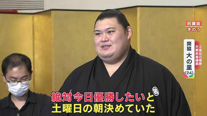 2024年9月21日、大相撲秋場所14日目、千秋楽を待たずに2度目の優勝を決めた関脇・大の里(24)。