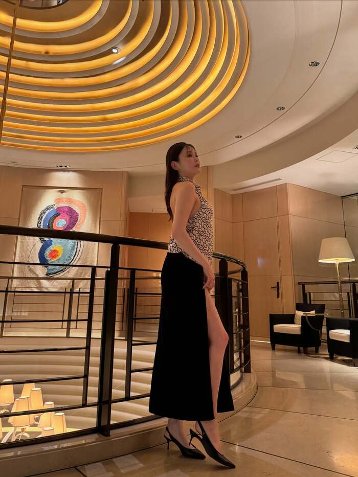 横を向き、スリットから片足を少し出すポーズを収めたショットは、大人な雰囲気がマシマシです。