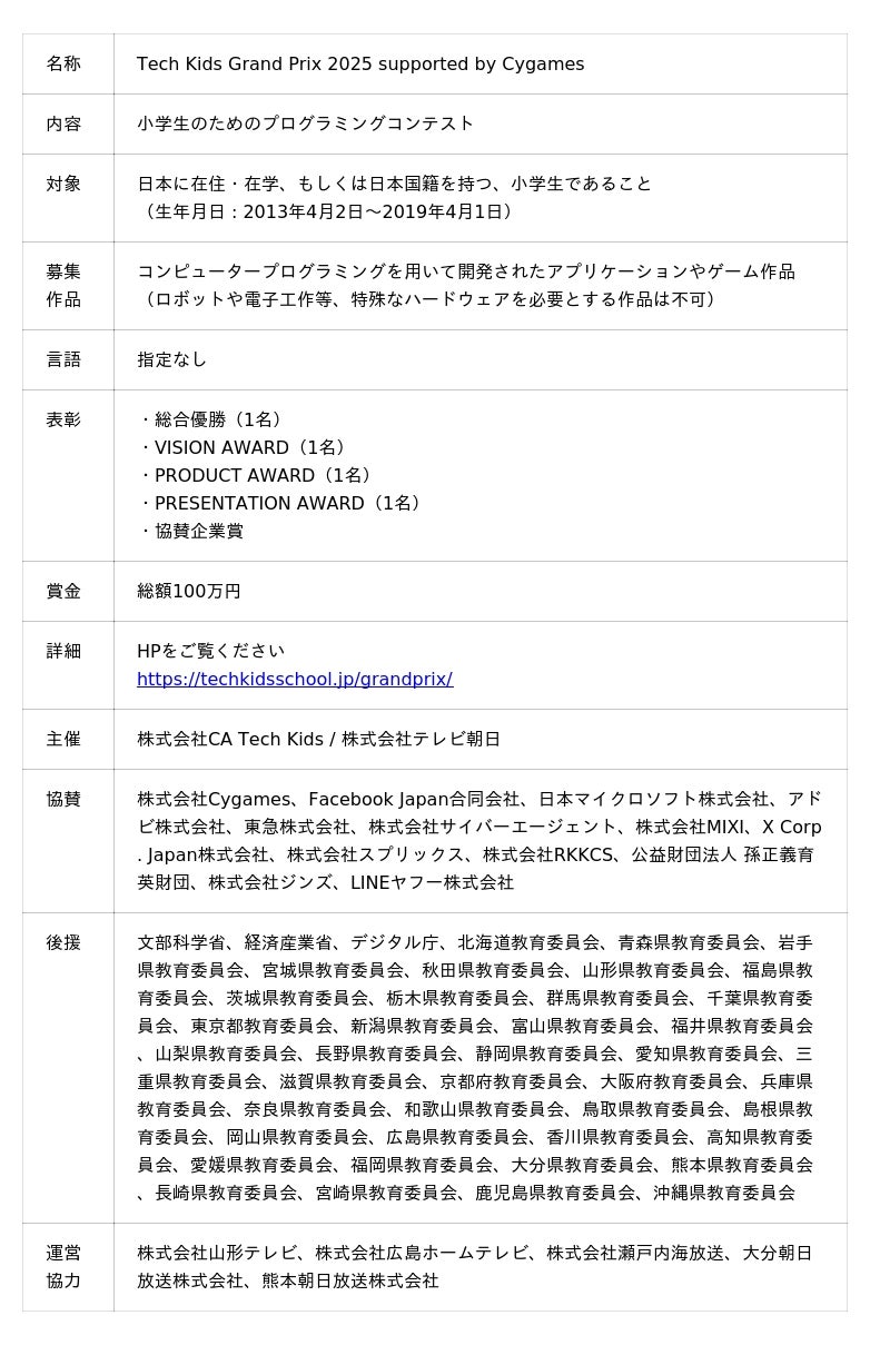 ■「Tech Kids Grand Prix 2025」開催概要
