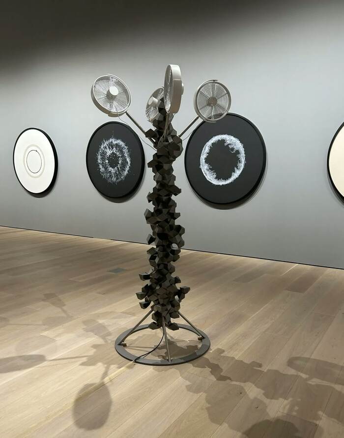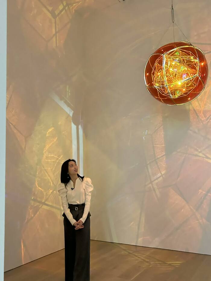 オラファー・エリアソンさんの作品は、麻布台ヒルズの文化発信の中核を担うギャラリーのこけら落としとして開催中の「オラファー・エリアソン展:相互に繋がりあう瞬間が協和する周期」でも見られます。ロビーのパブリックアートと連動する光や素材を使った作品が多数、展示されています。