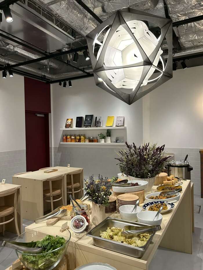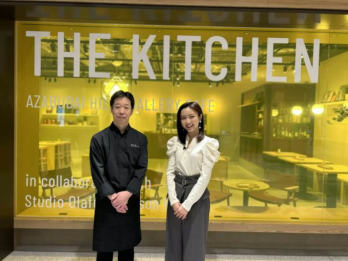 エリアソンワールドの体験はこれだけではありません。展覧会の会期中限定でコラボカフェが営業しているのです。名前は「THE KITCHEN(ザ・キッチン)」。増谷シェフが出迎えてくれました。