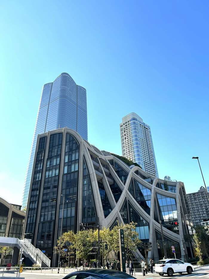波打つような外観をデザインしたのは、ロンドンオリンピックの聖火台などを手がけたイギリス人のトーマス・ヘザウィックさん。日本で初めての建築したのがこの麻布台ヒルズです。