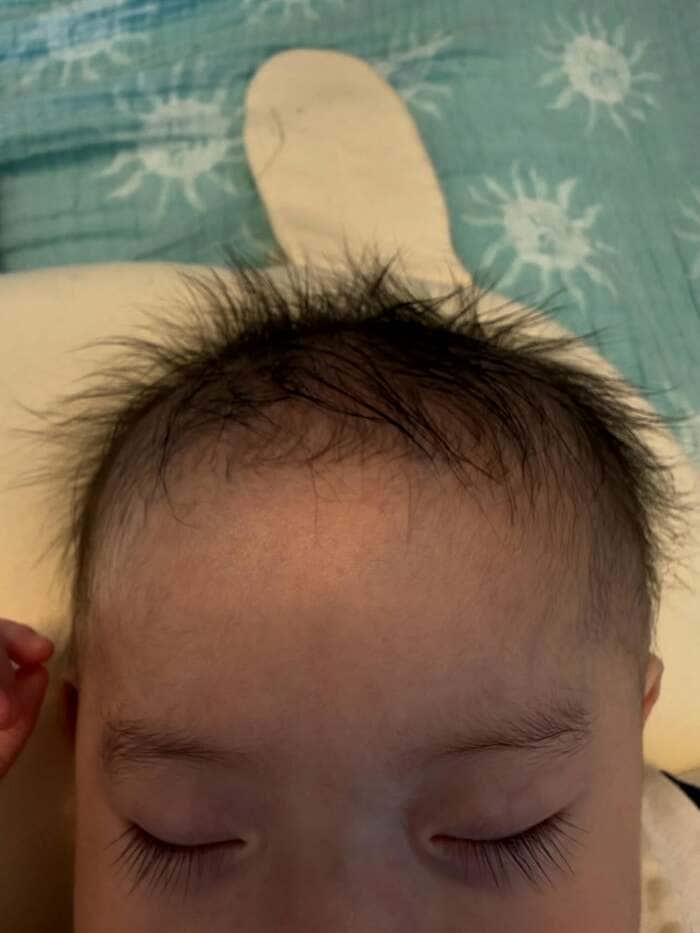 一方の弟くんについては「髪が生えてきたーッ」とつづっていて、スヤスヤ寝ている写真を見ると、髪の毛があらゆる方向を向きながら立派に伸びてきています。