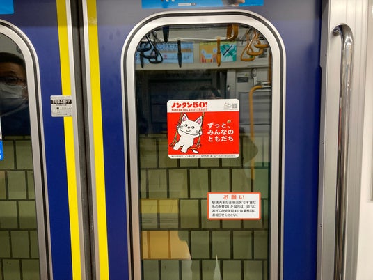 都内各所では2026年3月31日まで、電車内にこのロゴを使用した広告を出稿しています。