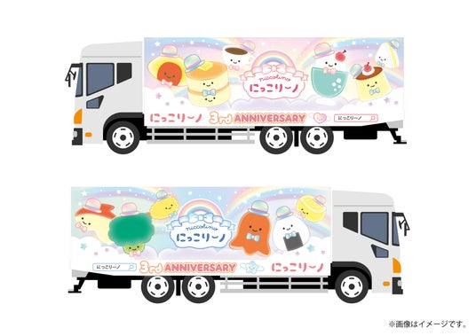 2026年3月2日(月)~3月8日(日)の期間、3周年記念のメルヘンデザイン仕様に装ったアドトラックが、池袋駅周辺を走行中!今回、にっこりーノパークでおなじみの、にっこりーノのオリジナルソングも流れ、3周年をにぎやかに盛り上げます♪