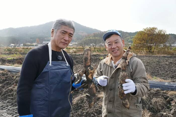 取材のOKを取りつけた二人は、収穫体験をさせていただくことに。すると、吉川さんは掘る前から「元気なんが採れたら、お土産にもろてもええですか?」と食材交渉まで始め、西村さんを驚かせます。