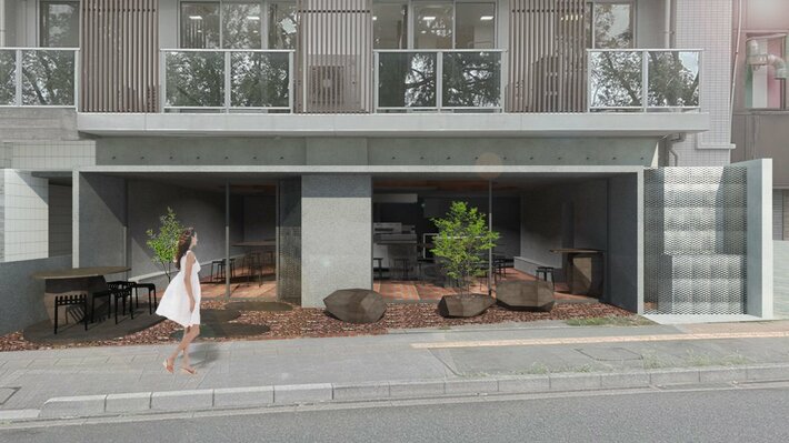 カウンター席とテーブル席は、あえて明確に分断していません。カウンター席はキッチンを中心に人のにぎわいを感じられる設計に。テーブル席は、落ち着きを保ちながらも、空間全体に溶け込む配置に。視線が厨房だけに集中するのではなく、店内のさまざまな方向に自然に広がることで、お客様それぞれの時間を楽しみながらも、同じ空気も共有できる空間に仕上げました。