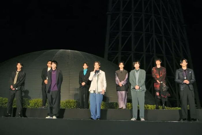 「映画刀剣乱舞-黎明-」の東京スカイツリー点灯式&完成報告会が3月19日に行われ、鈴木拡樹さん、荒牧慶彦さん、和田雅成さん、梅津瑞樹さん、佐藤たかみちさん、定本楓馬さん、小西詠斗さん、玉城裕規さん、メガホンをとった耶雲哉治監督が出席しました。