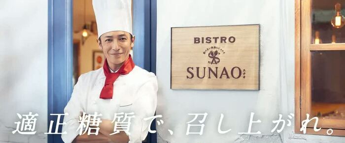 CMの最後で玉木さんが口ずさむ、「適正糖質で、召し上がれ♪SUNAO♪」という歌も今回のCM のために制作されており、ポップでやさしい「ビストロSUNAO」の世界が完成しました。