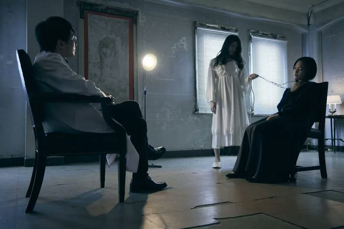 稲生が診察したところ、潤一の腰のあたりに、若い女がしがみついている姿が。女は、額から血を流し、薄汚れ、眼だけが爛々(らんらん)と輝いていました。それは、潤一に取り憑いた怨霊でした。