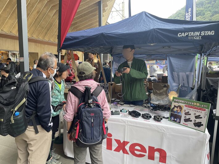 ビクセンのブースでは、人気製品「防振双眼鏡」をはじめ、自然をもっと楽しむための双眼鏡等を販売します。また、体験イベントとして「ビクセンと行くはじめての自然観察会」を実施。ビクセンのルーペや双眼鏡を使って高尾の自然を観察することができます。