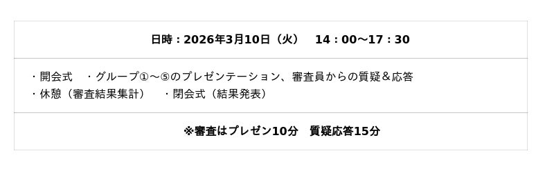 受験や部活以外でも、何かに本気で取り組むことが真の主体性を育て、人生の糧になる。そうした経験をする生徒を応援したい!という思いから生まれたこの企画。生徒たちは自ら事業企画書や予算書を作り、学内外に企画のメンターを探し、夢を形にする努力を重ねてきました。最終審査はその集大成。これまでの1次審査、2次審査を勝ち上がった5チームがガチンコ勝負でプレゼンに臨みます。