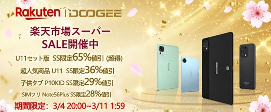 この度、楽天市場 タブレットカテゴリで人気急上昇中のDOOGEE楽天市場直営店(https://www.rakuten.co.jp/doogee-store/)が、赤字覚悟の超大胆割引で参加。**Android16タブレット**、**Gemini AIタブレット、子供タブレット、SIMフリースマホなど、厳選30モデル以上をすべて20%以上OFFでご提供します。特に目玉のU11セット版は65%OFF**という破格の価格を実現。在庫限り・先着順のため、早い者勝ちです。今回を逃すと次回同規模セールは3ヶ月後になるとのことです。