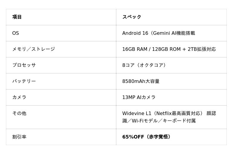 最新Android16搭載 Gemini AIタブレット(キーボード付きセット版)https://item.rakuten.co.jp/doogee-store/u11-set/