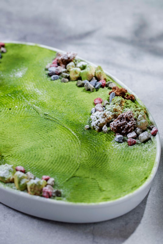 上品な抹茶の香りと濃厚な味わいがふんわりと広がる「抹茶スフレチーズケーキ」や、ラズベリーやカシスの甘酸っぱさに抹茶のコクを重ね、キャラメリゼしたアーモンドの食感をアクセントとした「赤いベリーと抹茶のトライフル」をはじめ、約20種類の香り高いデザートをご用意いたします。他にも「黒豆入り抹茶のクグロフ」、「抹茶のモンブラン オレオ添え」、そして野点の風景を思わせるような「抹茶のティラミス 日本庭園風“枯山水”」など、京都・宇治抹茶や愛知・西尾抹茶を中心とした上質な抹茶に多彩な素材を掛け合わせた、バラエティー豊かな品々を揃えました。いずれも、ペストリーシェフが一つひとつ技と感性を注ぎ、丁寧に組み合わせた初夏の気配をまとうデザートばかりです。