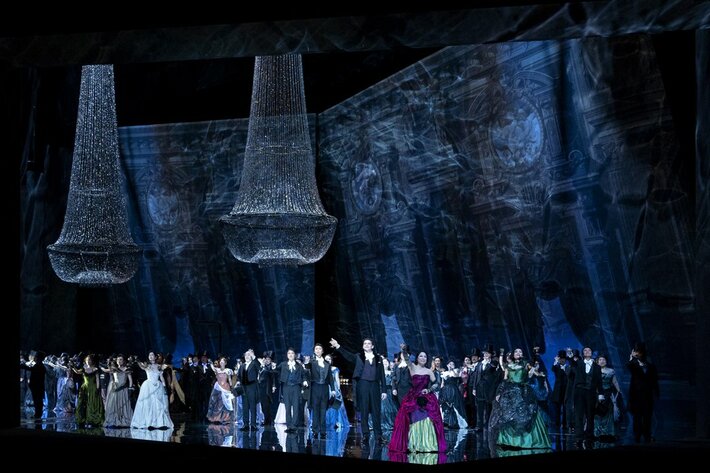 演出のヴァンサン・ブサールは色彩にこだわる洗練されたビジュアルの舞台に定評があり、この『椿姫』でもその美的センスを存分に発揮。高さ12メートルものシャンデリアや巨大な鏡に囲まれた陰影の深い舞台で効果的に心象風景を描出し、男性社会に誇り高く生きた女性ヴィオレッタの姿を印象付けます。ヴィオレッタの心理があぶり出される求心的な演出は、現代に生きる私たちの共感を呼び、圧倒的感動をもたらします。