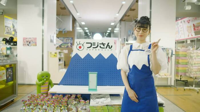 フジテレビ公式ショップ「フジさん」の店員衣装に身を包んだハシヤスメさんが “トビラ”からあふれてくるキャラクターや映像、あの懐かしい音楽を案内します。