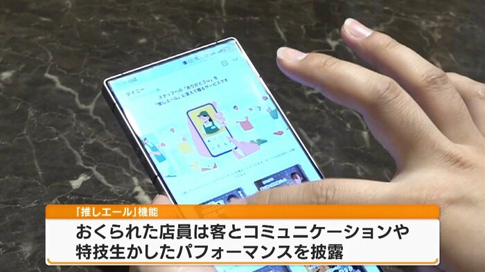 指定した店員に「推しエール」を送ると、受け取った店員は、お礼の挨拶などでお客さんとコミュニケーションを計ったり、特技を生かしたパフォーマンスを披露します。