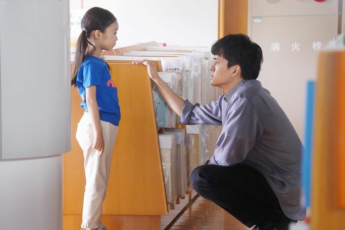 心当たりに電話して海を探す夏。津野晴明(池松壮亮)に電話をかけると、海が図書館に来ていると言われて一安心する。