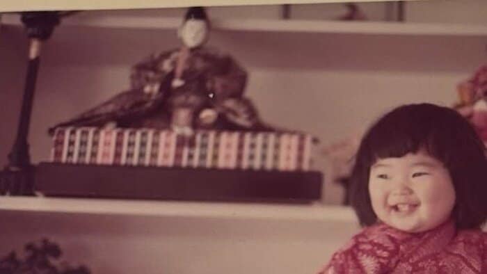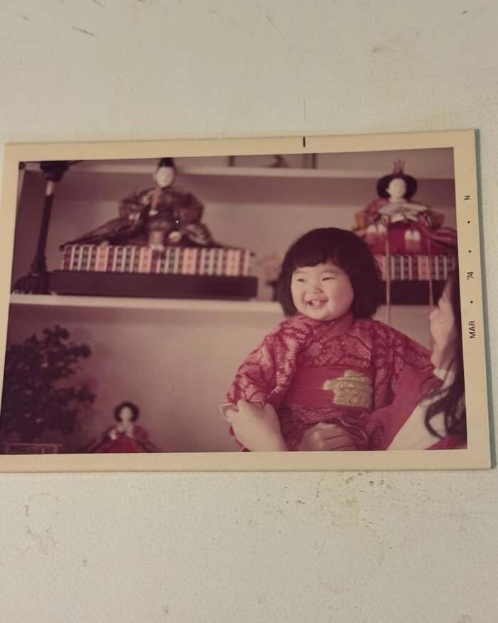 ひな人形に嬉しそうな表情を見せる、自身の幼少期ショットを公開しました。