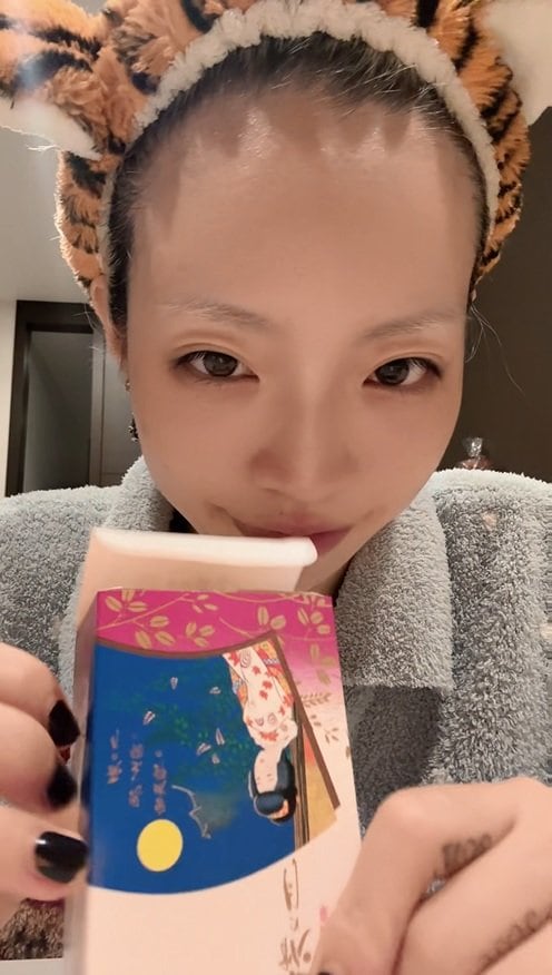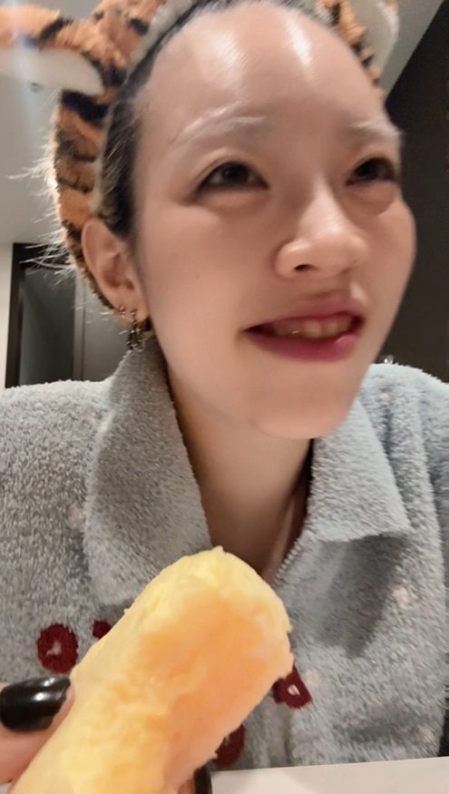 冒頭、虎柄のヘアバンドで前髪を上げ、おでこを全開にしたちゃんみなさんが登場。手には『萩の月』の箱が握られており、今まさに開封しようとしているところです。