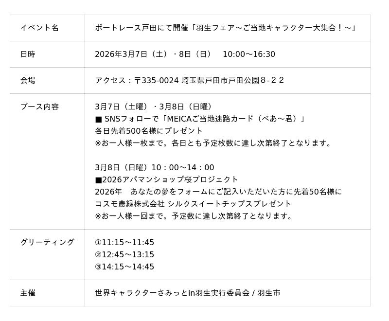 (主催:世界キャラクターさみっとin羽生実行委員会/羽生市)に初参加いたします。
