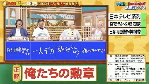 正解は「俺たちの勲章」。惜しくも正解者はゼロでした。
