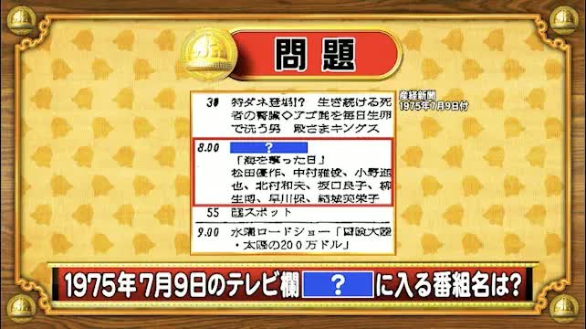 最後は、テレビ欄の問題。今から48年前、1975年7月9日のテレビ欄。「?」に入る番組名は何でしょうか?