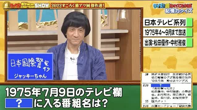 ジャッキーさんの答えは、「日本国際警察」。どうせならジャッキー・チェンの代表作『ポリス・ストーリー/香港国際警察』と書けば…(笑)。残念ながら不正解。