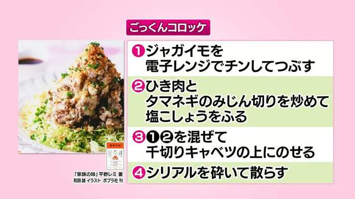 平野さんは、献立に苦しむ人にオススメの「ごっくんコロッケ」のレシピを紹介。