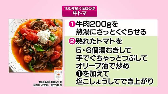 平野さんは、アメリカから来日したおじいさんの代から5代に渡って引き継がれてきた伝統の味「牛トマ」のレシピも披露!