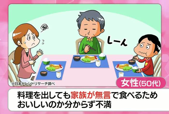 しかし、「料理を出しても、家族が無言で食べるので不満」と、食卓の雰囲気について悩みを抱えている人も多いようです。