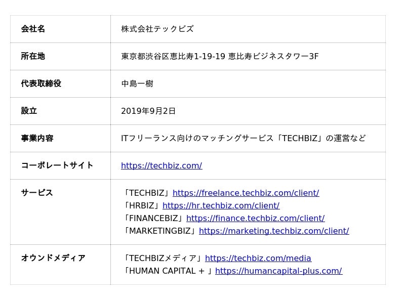 テックビズは「働き方を変え、世界を変えていく」をスローガンに掲げ、国内最大級のITフリーランス向けエージェント「TECHBIZ」を運営しています。近年ではマーケティング、人事、財務経理といったビジネス職のフリーランスと企業をマッチングするサービスにも事業領域を拡大しており、「アジア太平洋地域における急成長企業ランキング」にも2021年より3年連続でランクインしています。