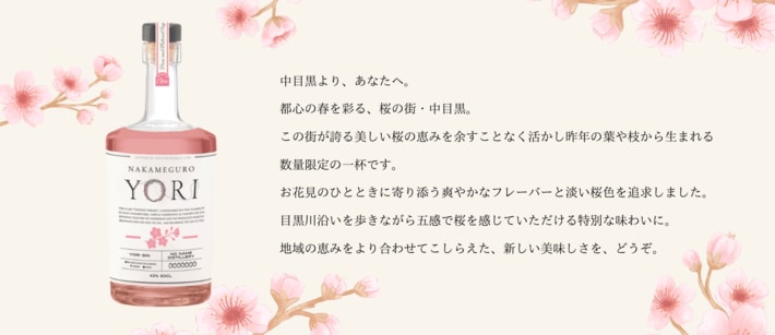 『NAKAMEGURO』は、お花見シーズンの目黒川来訪者を意識し、クラフトジン初心者の方でも親しみやすい味わいを追求しました。